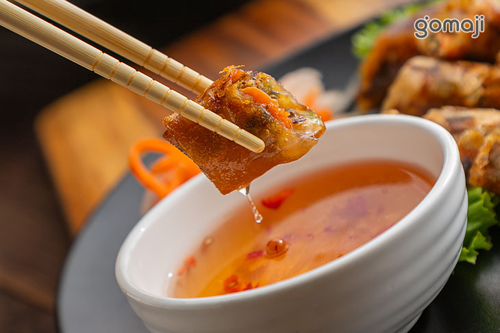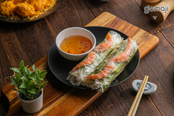 清爽的生春捲是吃越式料理時的必點品項,Q彈的越南米紙內包裹著新鮮甘甜的蝦子、爽脆的生菜、時蔬與米線等豐富的配料,吃起來口感層次豐富,伴隨著淡淡清香,沾取醬汁提升風味,十分涼爽開胃。