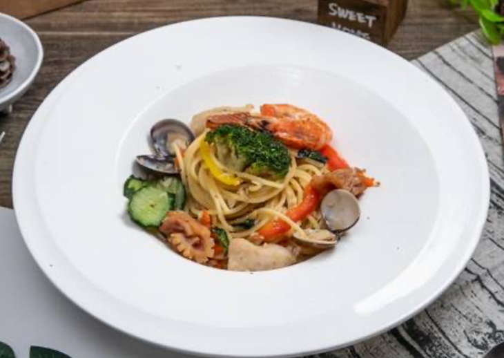 新鮮海鮮和義大利麵條的完美結合。海鮮在高溫鍋中快速翻炒,使得它們的鮮甜味道被完整保留。當蒜末與橄欖油在鍋中混合時,蒜香立即瀰漫開來,為整道菜品增添了濃郁的香氣。海鮮的口感非常豐富,鮮蝦的彈嫩、多汁,小卷的韌性和花枝的爽脆都帶來了極佳的口感,清炒的手法讓這道義大利麵保持了原汁原味的清新口感,而蒜香則為麵條和海鮮增添了一層細膩的辛香。整道菜品在味覺上既有海鮮的鮮美,又帶有蒜香的濃郁,喜歡清爽口味的你選這道就對了!