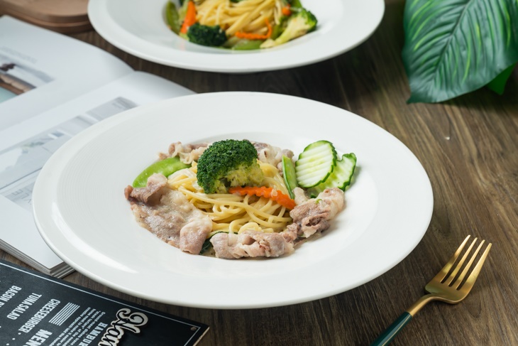 融合香煎牛培根,以及濃郁的奶油白醬,給予您多元的口感體驗。牛肉的鹹香和蔬菜的清爽風味相得益彰,再加上奶油醬的綿密口感,讓這道料理擁有令人無法抗拒的美味~除此之外,麵條紮實彈牙,與配料完美融合,成就了這令人愛不釋口的美味料理,鹹而不膩的滋味絕對是來店必點之一!