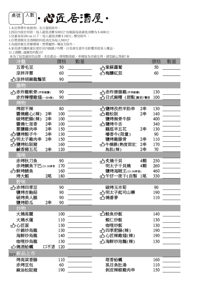 心匠居酒屋是一家傳統日式居酒屋,專門提供各式下酒菜和烤串料理,適合朋友聚會或下班後放鬆,享受豐富的日式美食。菜單上常見的有串燒、炸物、烤物等經典料理,尤其是以精緻的烤串為招牌,每串都經過炭火精心燒烤,外皮酥脆、內裡多汁,完美釋放出食材的天然鮮味。搭配適量的調味料和醬汁,讓味蕾享受到多層次的豐富滋味。