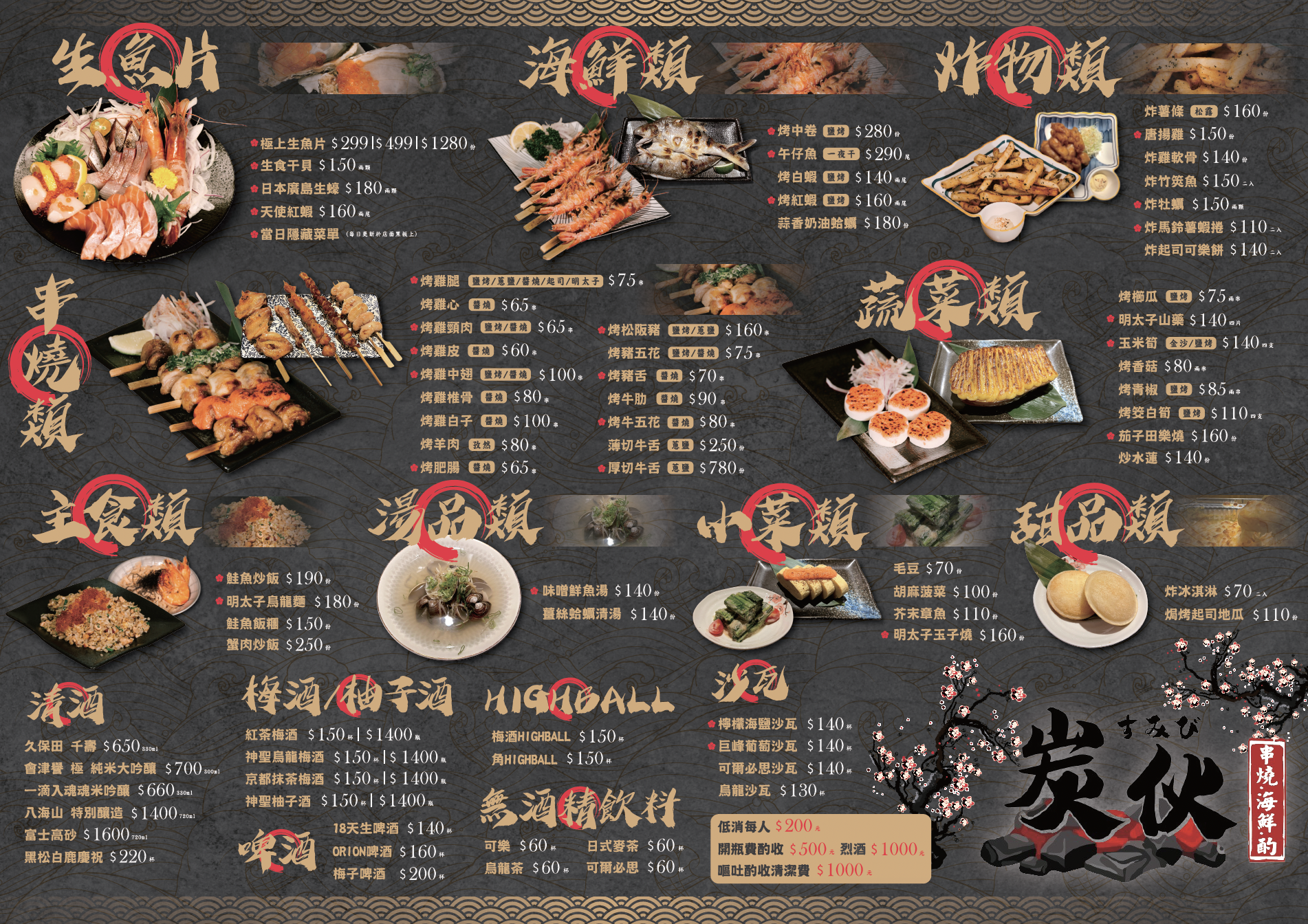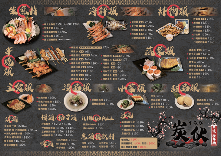 炭伙是一家以串燒、海鮮為主打的居酒屋,營造出濃厚日式氛圍,適合三五好友聚餐或小酌放鬆。店內使用炭火精心烤製各式串燒,從多汁的雞肉串、醬香四溢的牛肉串,到口感豐富的豬五花,均展現細膩的烤功與絕佳的火候掌控。此外,當日新鮮直送的海鮮如烤鮮蝦、烤透抽等,鮮甜滋味令人難以抗拒。店內的每一道菜肴與飲品,皆展現了對食材的用心與日式居酒文化的傳承,是品味美食與微醺時光的理想場所。
