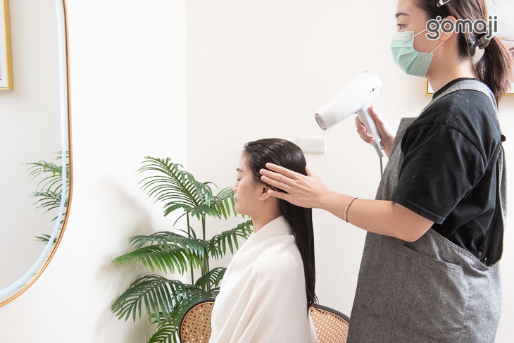 〈迎賓茶飲 + 背部開背順氣 + 腿部放鬆 + 細緻頭部舒刮 + 前胸部排導 + 頭皮養護 + 植護淨髮 + 植護髮絲重建 + 極享頭皮舒眠手技指壓 + 蒸熏淨化 + 深層潔淨 + 手部無重力按摩 + 頭部洗淨 + 光圈水循環靜謐SPA + 髮絲強韌 + 柔順整髮〉