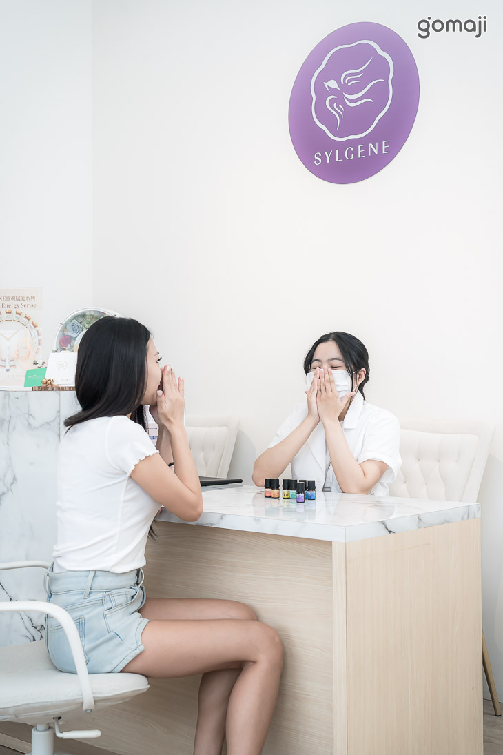 〈課程說明 + 精油抓周 + 光譜肌膚說明 + 牛角頭部精油舒刮 + 淨洗卸妝 + 溫和潔膚 + 平衡調理 + 臉部釋壓手技按摩 + 粉晶棒恢復眼周肌肉緊緻拉提 + 粉晶棒耳周經釋耳壓 + 溫感熱敷 + 肩頸舒緩 + 溫感熱敷 + 高分子霧化 + SYLGENE 導入安瓶(九選一,美容師專業建議配製使用) + 潤澤喚膚面膜 + 肌膚潤澤保養 + 防曬 + 課後茶飲〉