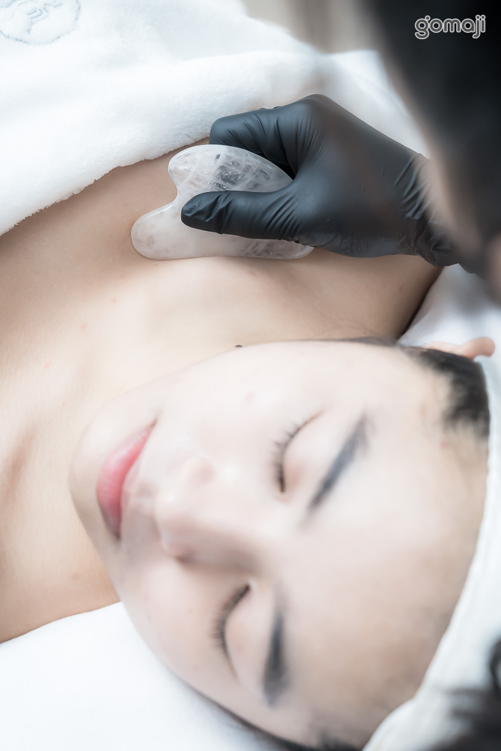 〈課程說明 + 精油抓周 + 光譜肌膚說明 + 牛角頭部精油舒刮 + 卸妝淨透毛孔 + 溫和潔膚 + 平衡調理 + 角質甦新 + 角質精華濕敷 + 高分子霧化 + 代謝角質層 + 韓式全臉黑頭粉刺清潔20分 + 粉晶上胸排導 + 肩頸舒緩 + 溫感熱敷 + SYLGENE導入安瓶(九選一,美容師專業建議配製使用) + 柔敏凝膠凍膜 + 肌膚潤澤保養 + 防曬 + 課後茶飲〉