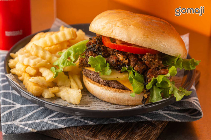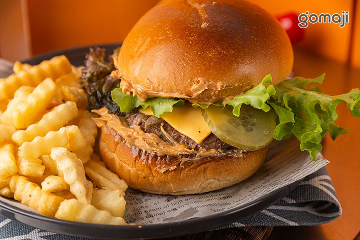 特別使用濃郁花生醬,搭配鬆軟Q彈的漢堡,真是天作之合!細細品味~香醇馥郁的花生醬搭配上鹹香的培根起司牛肉,香味緩緩迂迴於口中,縈繞於齒間,堪稱經典的美味,絕對別錯過!旁邊炸至金黃酥脆的薯條,無論是大人或是小孩都喜歡~脆口的外皮包裹著柔軟的內部,細細品味,口中充滿馬鈴薯的香氣,讓人忍不住一口接著一口,為您的味蕾帶來極致的美味享受!