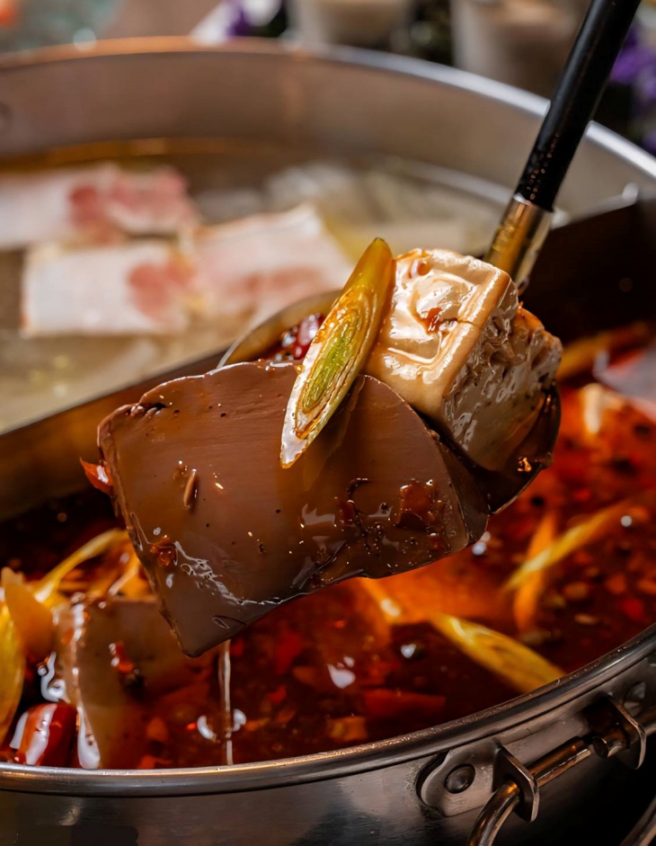 鴛鴦鍋以「招牌麻辣鍋」與「絕品酸菜鍋」雙湯頭組合,帶來層次分明的味覺享受。麻辣湯底入口辣度厚實卻不嗆喉,舌尖能感受到細緻的刺激與回甘。食材下鍋涮煮後,肉片吸附湯汁精華,每一口都香辣過癮、餘韻悠長。另一側的酸菜鍋則呈現截然不同的清爽風味。酸香自然溫潤,柔和不刺激,能有效中和麻辣的厚重感。與肉品或海鮮搭配時,更能提升整體鮮甜層次。兩款湯底交替品嚐,從香麻濃烈到清酸回甘,形成完美平衡。