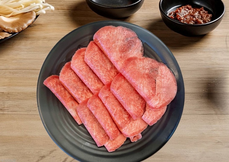 老饕牛舌以其細膩彈嫩的口感,成為火鍋中的極品食材。薄切後的牛舌紋理清晰,帶有自然油花,輕輕下鍋涮煮數秒即可入口,保有最完美的嫩度與彈性。入口瞬間,先感受到外層微微緊實的咬勁,隨著咀嚼,內裡逐漸釋放出柔軟與細緻的肉質層次,口感富有變化卻毫不乾柴。