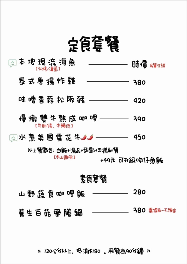 ※菜色內容依季節時令調整,實際菜色、價目依現場提供為主