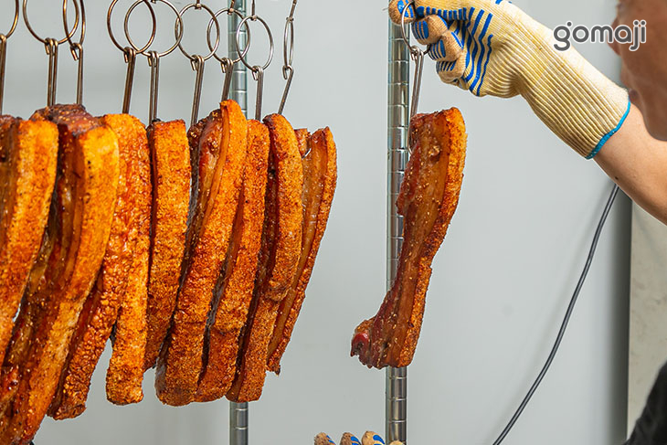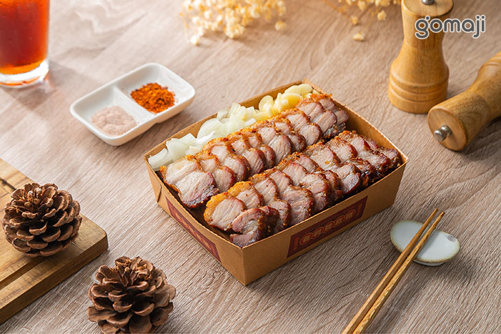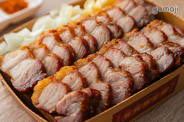 一開店就十里飄香,美妙的味道讓人垂涎欲滴,吃過的人無不稱讚,不吃絕對會後悔!脆皮豬褐紅色的外皮閃爍著金黃色的光芒,看到就想到它動人的滋味,想到這裡口水已經流滿地了,店家堅持選用品質好的豬肉,烘烤過程非常考驗師傅的功夫,看起來簡單卻需要非常細心,這樣的用心只為了帶給顧客最好的食用體驗,老少咸宜的經典口味,是每位老饕都會買上好幾份的好滋味!