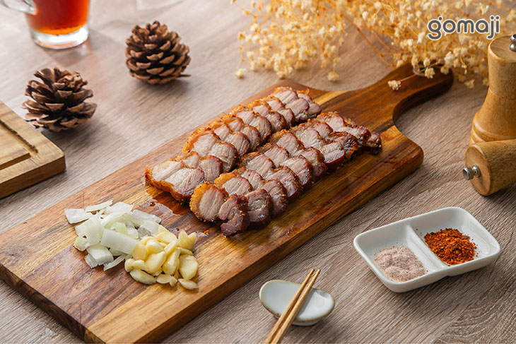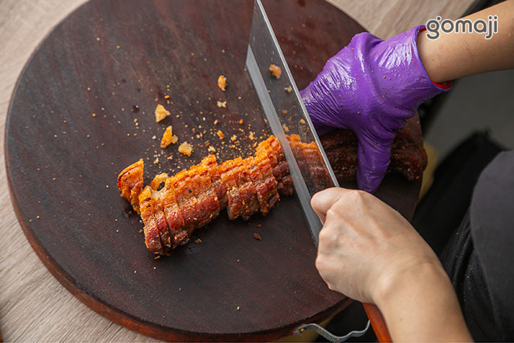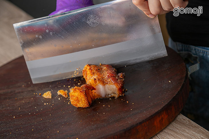 店家將特選的豬五花外皮烤至金黃酥脆,口感外酥內嫩、肥而不膩,一口咬下,咔滋咔滋的聲響,叫人愛不釋口~再搭配洋蔥、蒜頭一起吃下肚,爽度直接破錶!