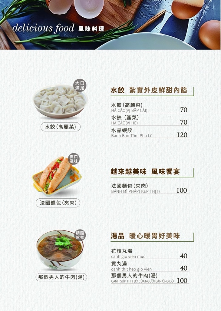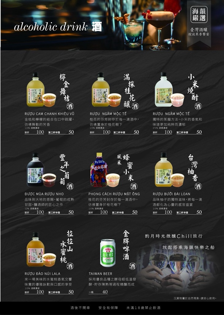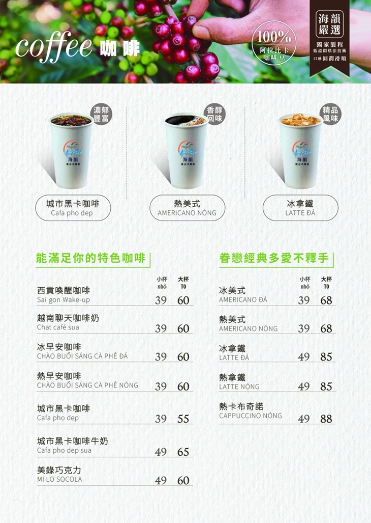 這裡結合了精緻的中西美食與絕佳的用餐氛圍,無論你是喜愛道地的台灣小吃、經典的越式料理,還是創新菜餚,這裡都能滿足你的味蕾!店內裝潢風格明亮,提供溫馨舒適的用餐環境,適合家庭聚會、朋友聚餐或商務午餐!在海韻,每一道菜都是廚師精心製作,力求帶給每位客人最完美的美食體驗~來到這裡,與親朋好友一同,品味生活中的每一份美好!