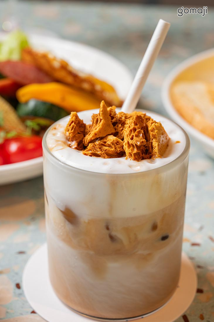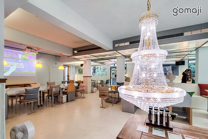 走上二樓推開門,視野隨即被寬闊明亮的潔白基調填滿,搭配品味非凡的設計家具,呈現出時髦且具溫度的生活感。空間中巧妙點綴著精緻壁爐與幾何美感座椅,牆上投射的趣味影像更為靜謐午後注入了動態的藝文靈魂,除了迷人的室內區,綠意盎然的戶外露台結合工業風設計,讓人能在喧囂的大安區高處覓得一處寧靜。餐點展現了極高的美學水準,從色彩繽紛的早午餐到精緻義麵與特色調飲,視覺與味覺並重。這裡是忙碌生活中最適合慢下腳步、享受極致美學與美味的療癒港灣。