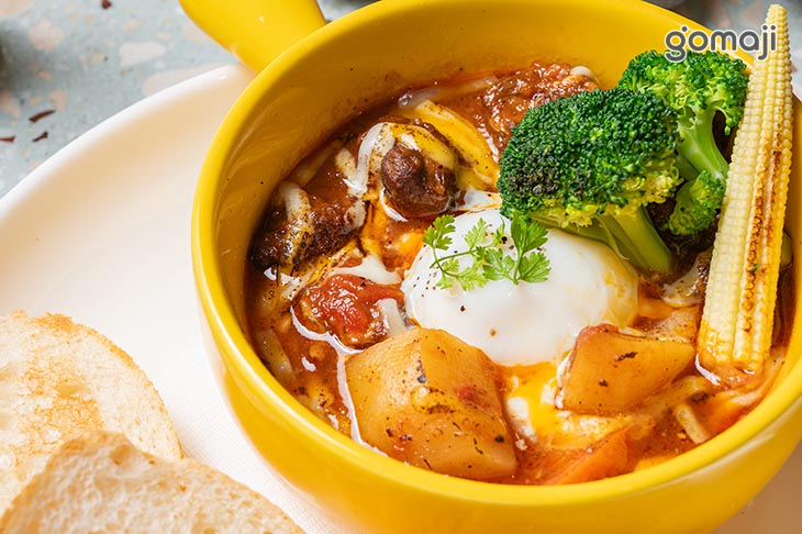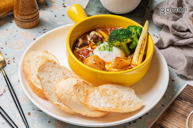 嚴選紅酒與南法香料慢火細燉,牛肉質地軟嫩入味,底蘊盡是蔬菜萃取出的自然甘甜。撕下一塊軟法麵包蘸取濃郁醬汁,劃開半熟溫泉蛋,看著金黃蛋液與醇厚湯頭交融出更為飽滿的層次。在簡約明亮的空間裡細品這份歐陸經典,猶如在喧囂都市中輕盈開啟一場充滿異國情調的味蕾微旅行。