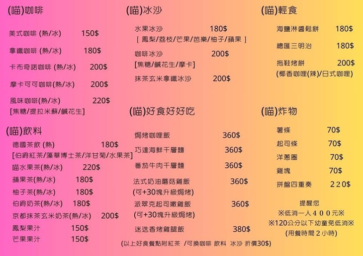 貓咪控的天堂,歡迎您的光臨!為您提供一個舒適、療癒的空間,讓您盡情享受與可愛店貓一起度過的優閒時光~除了可愛的貓咪,店內嚴選食材進行烹調,提供非常多樣的餐點選擇。店內的貓咪非常親人,會主動親近顧客,讓您感受到無限的愛意,心情放鬆、煩憂盡消!快來享受與貓咪互動的療癒時光以及極佳的用餐體驗~