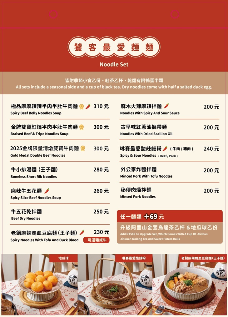 金牌雙寶紅燒半肉半肚牛肉麵(皆附季節小食乙份、紅茶乙杯)