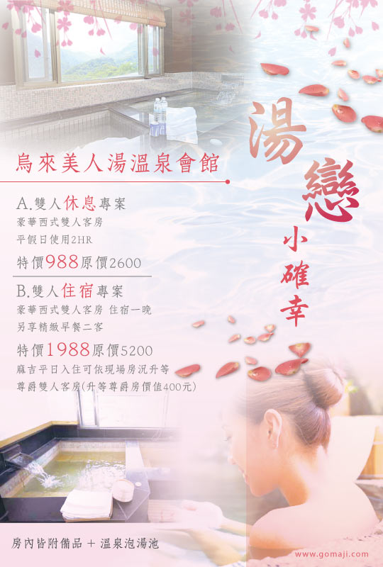 【烏來-美人湯溫泉會館】感謝麻吉們熱烈搶購,已全數賣光光。