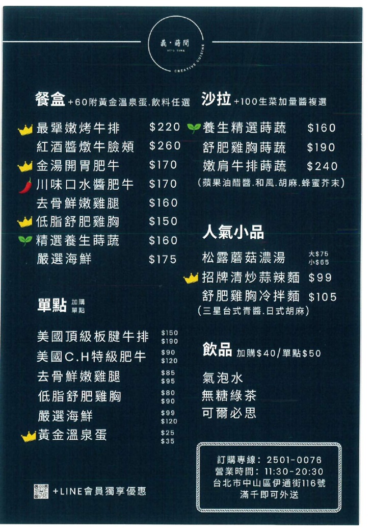 義•蒔間是一家風格溫馨的小型簡餐店,主打結合義式風味與日常家常感的創意料理。店內環境佈置簡潔,適合三五好友聚餐或一人靜靜用餐。餐點品項多元,從經典的義大利麵、餐盒,到創意料理都能吃到,用料實在、調味細膩,是一家讓人吃得舒服又能細細品味的小餐館。無論想吃得飽足或來點輕食,這裡都能找到合適選擇,尤其適合想在忙碌中抽身喘口氣的時候來訪。