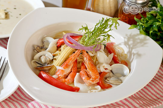 白酒海鮮總匯麵包含了大海的鮮味,佐以濃稠醬汁烹調,所有海洋的精華都在這一盤義大利麵之中!柔和的色澤,特有的鮮甜味都蘊含在裡頭,Q 彈的麵條吸收了醬汁與佐料的好滋味,唇齒之間都感受到了這份美味!
