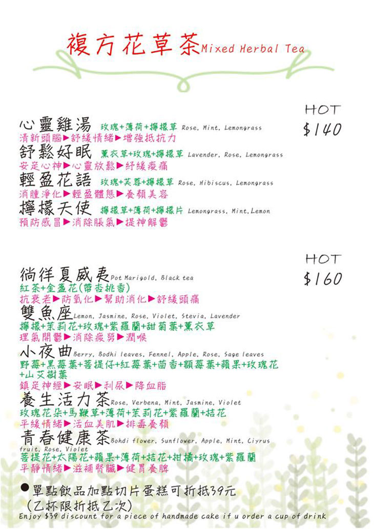 選用新鮮的食材與原料取代市面上廣為使用的人工香料,用心製作每一項商品,不用太多綴飾,使蛋糕有著天然純粹的芳香好味道。以簡單自然的風格一支獨秀,期待給每位擦肩而過的客人一抹輕鬆而真心的微笑!