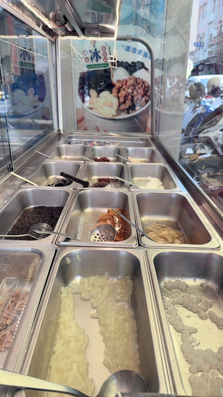 刨冰的冰沙細緻冰涼,入口即化,帶來瞬間的清爽感。粉圓是這道甜品的亮點,Q彈有勁,咬下去時感覺像是有一點微妙的反彈力,讓整個口感充滿趣味。隨著粉圓在口中輕輕彈跳,再搭配上甜美的糖水,增添了一層溫潤的甜味。冰涼的刨冰和Q彈的粉圓相互交織,讓每一口都有層次分明的口感變化,是炎熱天氣下最完美的選擇!