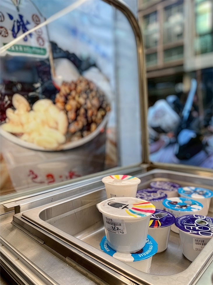 黑糖糖漿可說是店裡的招牌特色之一,特別是店家自行手工炒糖,這道工序賦予了糖漿獨特的風味。經過耐心的熬煮,黑糖糖漿散發出濃郁的焦香,帶著一點點的煙燻感和自然的甜味。澆在冰品上後,不僅增添了清涼退火的效果,還讓每一口都充滿了黑糖特有的深邃香氣與甜而不膩的口感,讓冰品更具層次感,讓人回味無窮。
