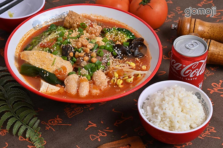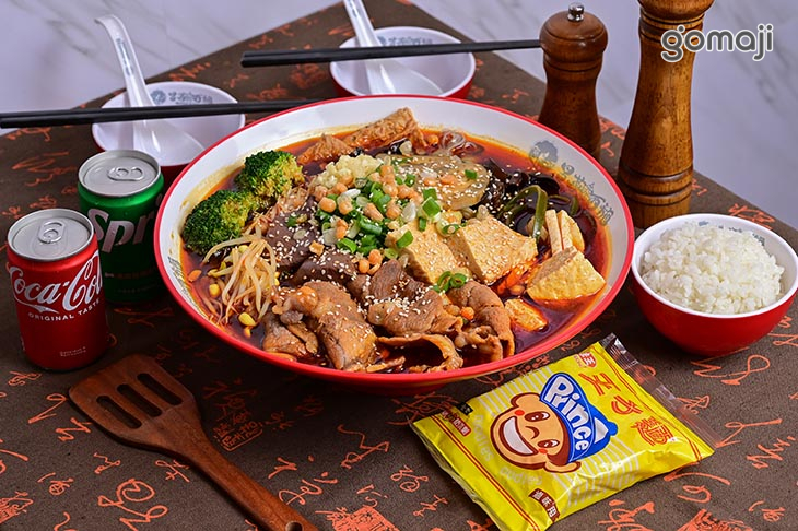 〈豬肉/雞肉/魚肉 三選一(大份) + 口味:火鍋冒菜/番茄/藤椒 三選一 + 時令蔬菜一份 + 主食:白飯/冬粉/王子麵 三選二 + 可樂/汽水/氣泡飲/檸檬紅茶 任選二〉