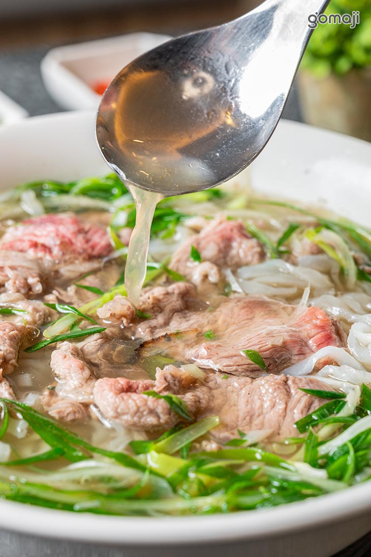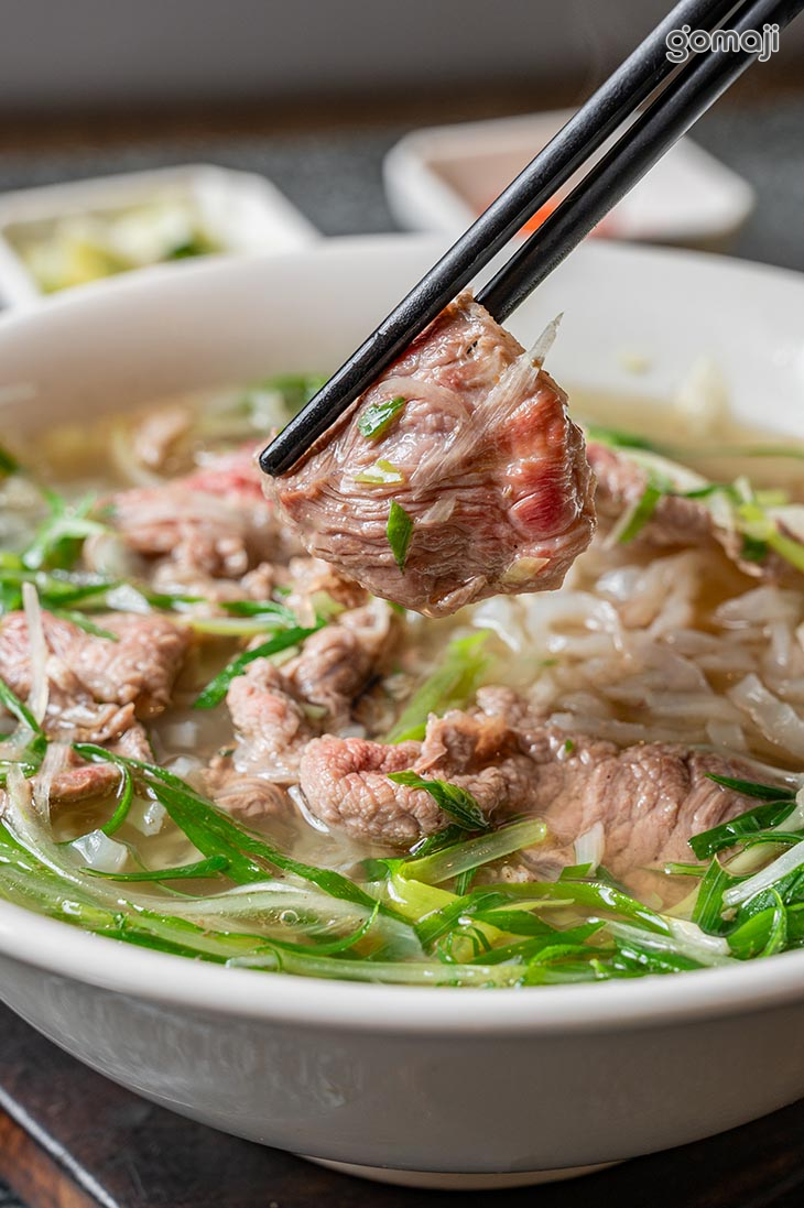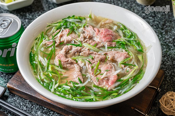 熱騰騰的湯頭香氣撲鼻,帶著濃郁鮮甜的滋味,輕輕拌勻,讓生牛肉在湯中慢慢熟成,鎖住肉質的軟嫩與鮮美。河粉滑順細緻,輕輕夾起就能感受到彈性,每一口都能吸附滿滿湯汁,讓風味更加濃厚。搭配香草與微酸提味的點綴,讓整體吃起來更清爽,層次豐富卻不膩口。細細品嚐時,每個元素都恰到好處,讓人忍不住一口接一口,回味無窮。