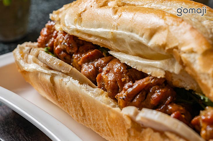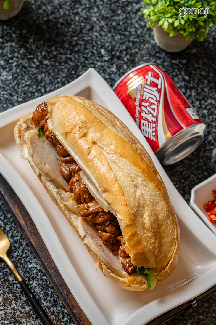 外皮烤得微微酥脆的法式長棍,輕輕一咬就能感受到內裡的柔軟細緻。夾入燒烤的肉片,帶點焦香的表面鎖住豐富肉汁,每一口都散發迷人的香氣。搭配清爽脆口的蔬菜,還有微微醃漬的點綴,增添層次感,咀嚼時更顯豐富。抹上的醬料不僅讓整體味道更加濃郁,也讓肉香與麵包的香氣融合得恰到好處,吃起來鹹香帶勁,讓人忍不住想再來一口。