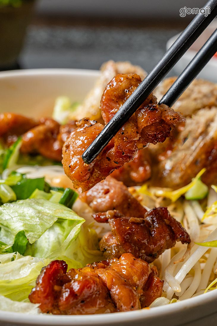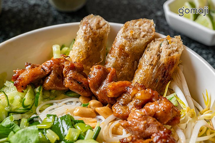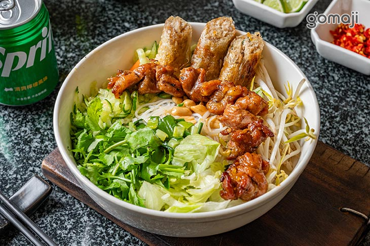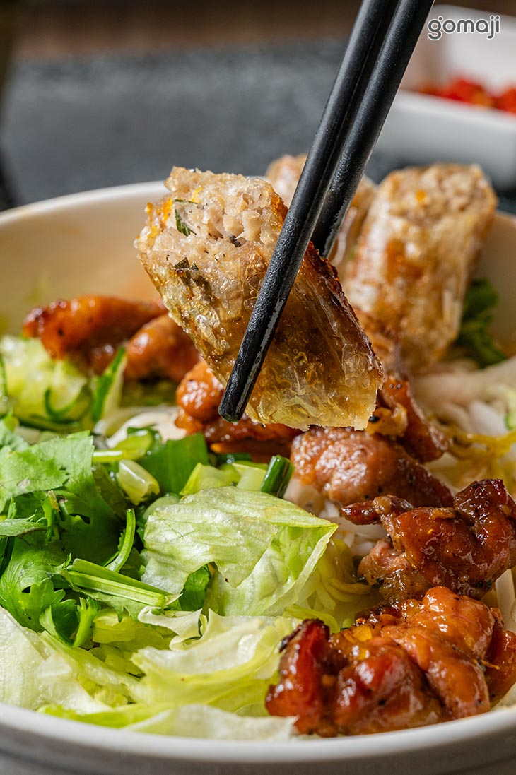 米線吸附了濃郁的醬汁,口感滑順又帶點嚼勁,每一口都能感受到食材的鮮香。炭烤肉片的香氣瀰漫在醬汁裡,輕輕一夾,肉質嫩中帶Q,微微焦香更添美味。搭配一旁的炸春捲,外皮金黃酥脆,內餡飽滿且帶點微微的鹹甜風味,咬下去的瞬間,內外層次分明,酥脆與柔嫩的對比讓人驚喜。配上一口米線,口感變化豐富,每一口都令人滿足。