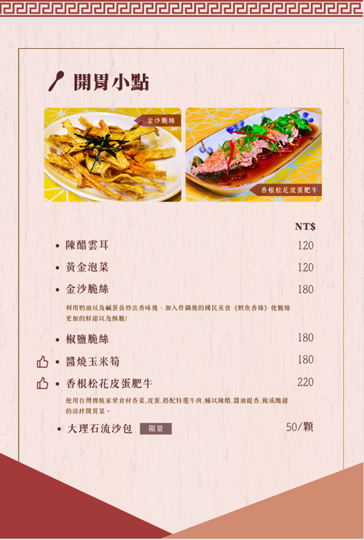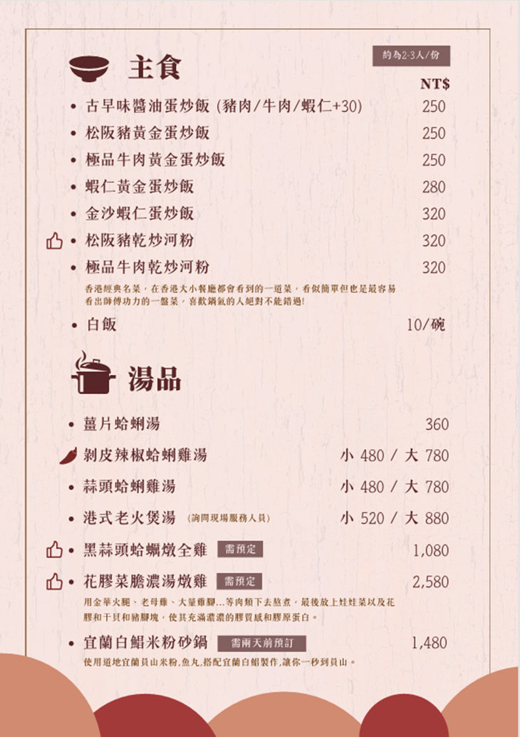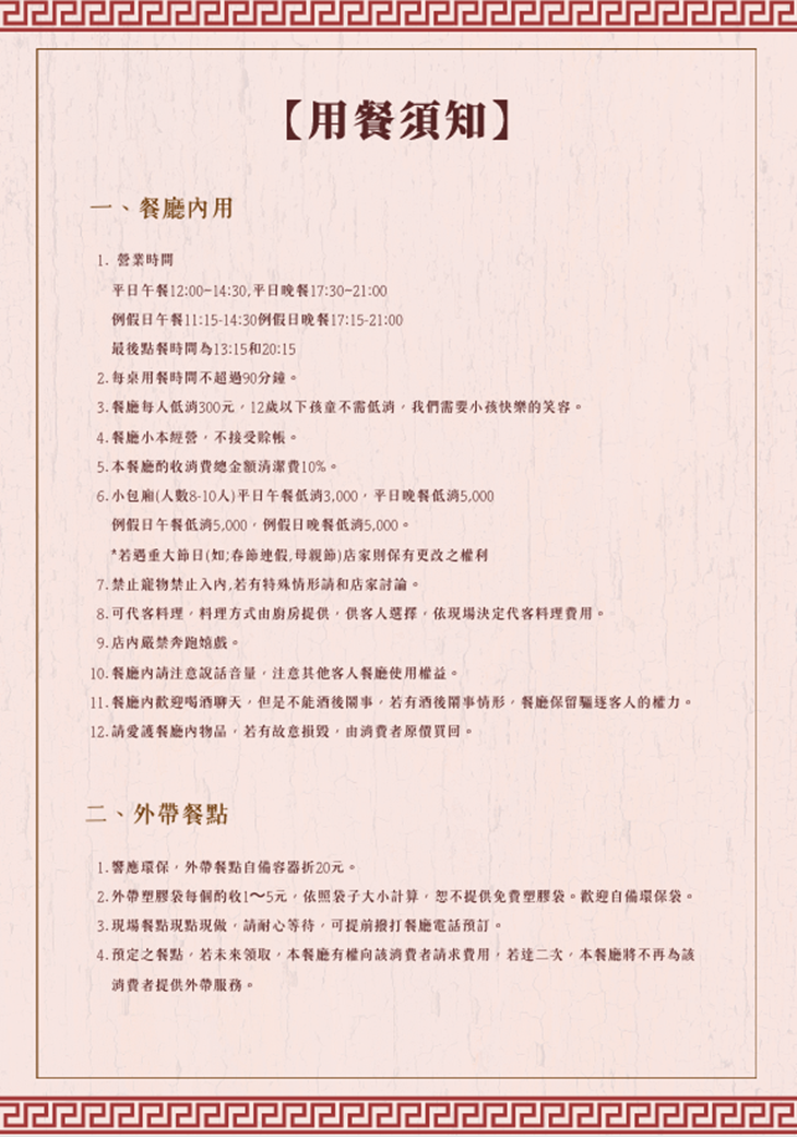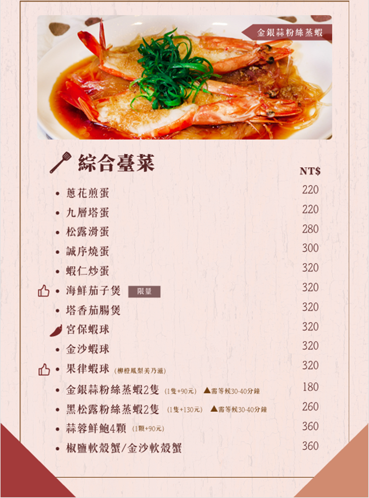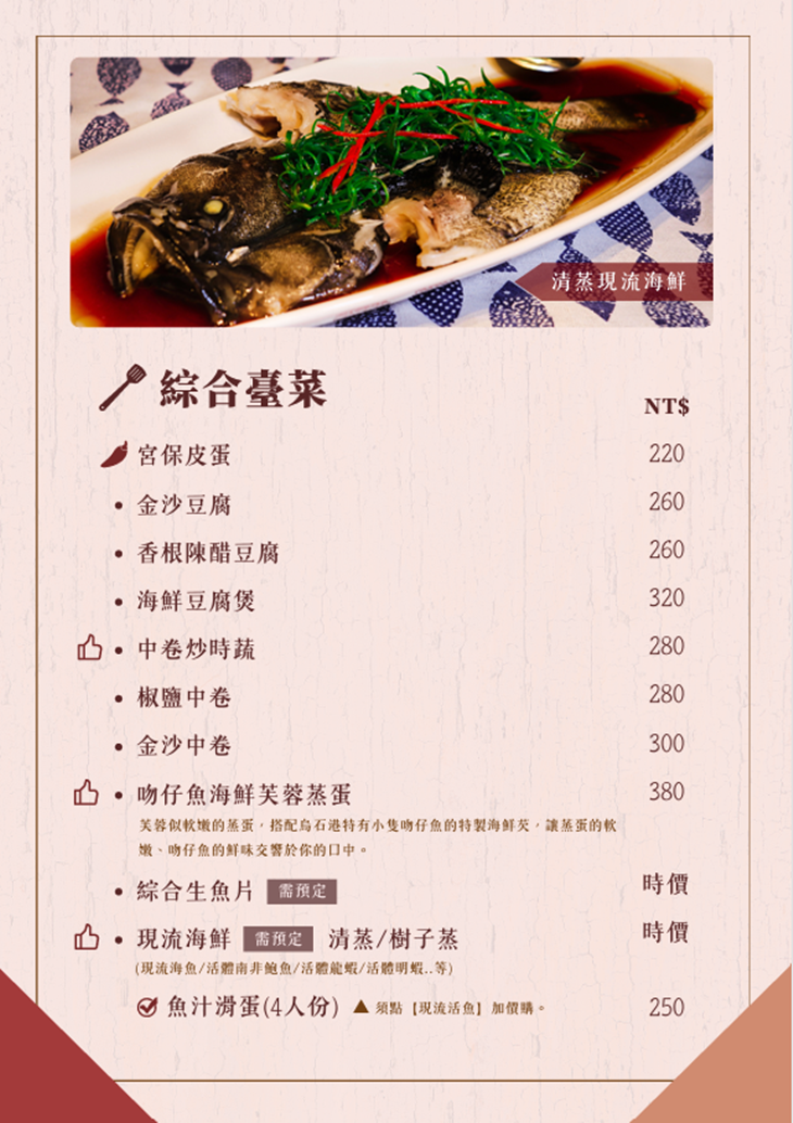 ※菜色內容依季節時令調整,實際菜色、價目依現場提供為主