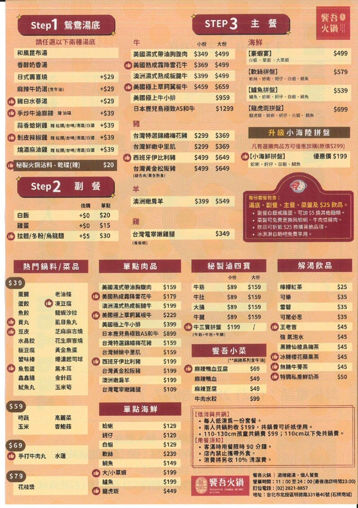 ※菜色內容依季節時令調整,實際菜色、價目依現場提供為主