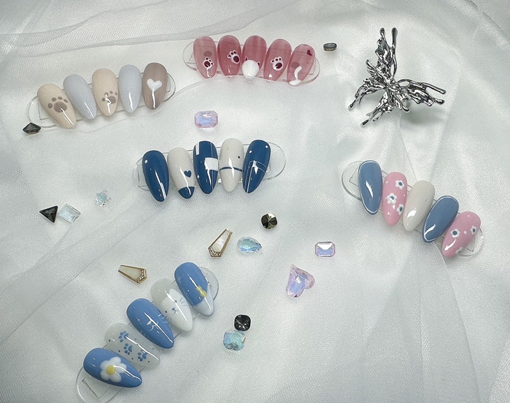 〈消毒 + 甲面清潔 + 指緣軟化 + 甘皮處理 + 修磨指緣硬皮 + 指甲修型 + 甲面拋磨 + 底膠選擇討論(針對不同的甲況,選擇不同的底膠) + 色彩討論 + 凝膠上色+兩指:貼鑽/貼紙 二選一 + 薄建構 + 上層凝膠 + 指緣油滋養〉