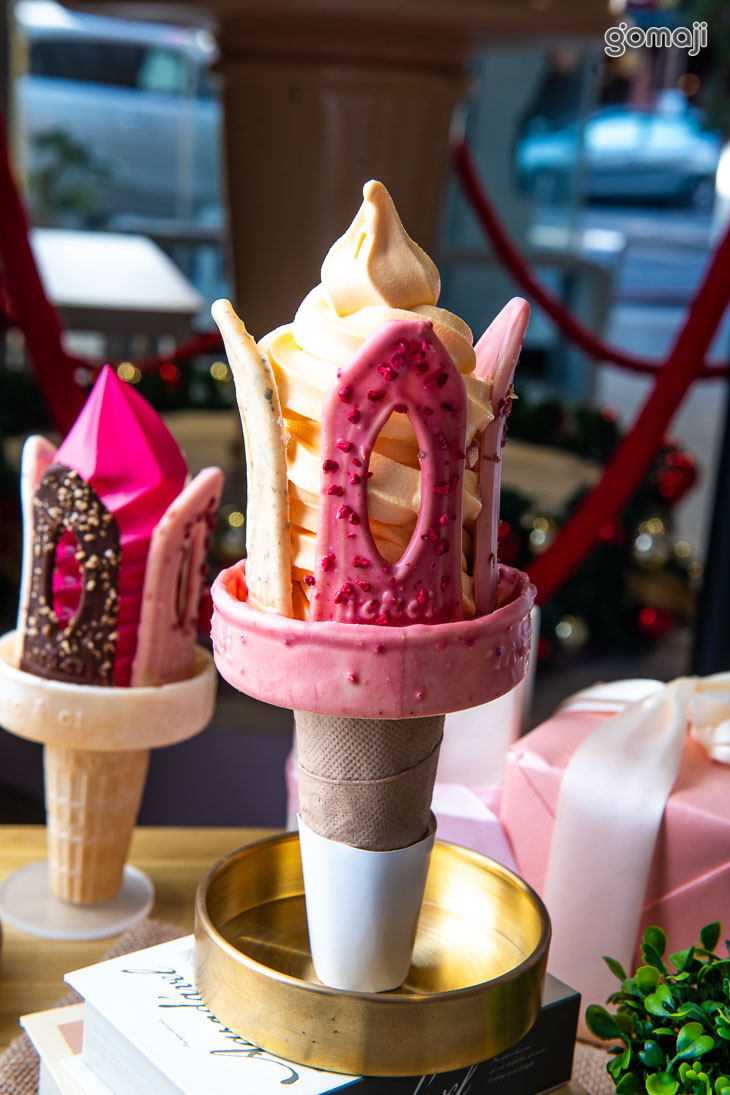 造型更是其亮點,加入粉紅色巧克力建築般的細節設計,增添視覺上的奢華感。這不僅是一支冰淇淋,更是一件可口的藝術品,適合與朋友聚會或拍照打卡,是甜點愛好者不可錯過的選擇!