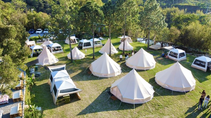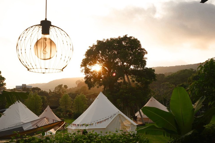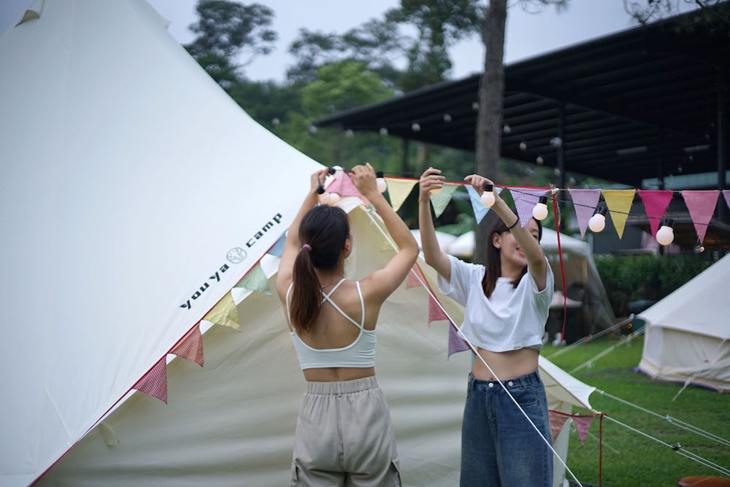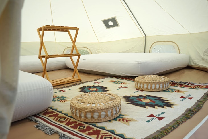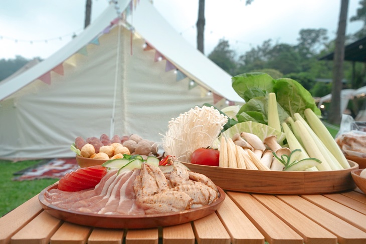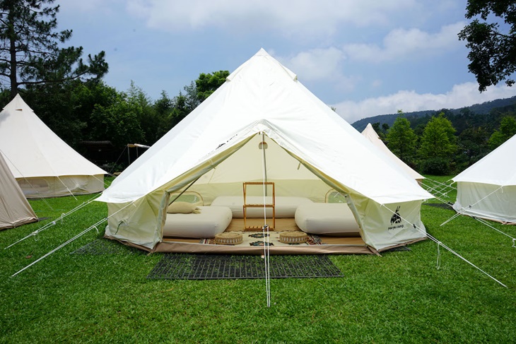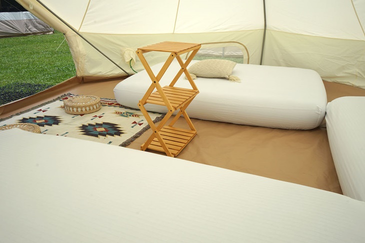 清新鐘型帳以舒適與便利為特色,帳內設有兩張雙人床與齊全寢具,空間寬敞明亮,讓露營也能享受如飯店般的放鬆感。入住方案包含豪華烤肉晚餐與豐盛早餐,從傍晚炭火香氣到清晨蟲鳴鳥叫,都能感受大自然的節奏。免搭帳、免帶裝備,抵達即可展開輕鬆露營時光,適合親子或好友一同體驗戶外的自在與愜意。