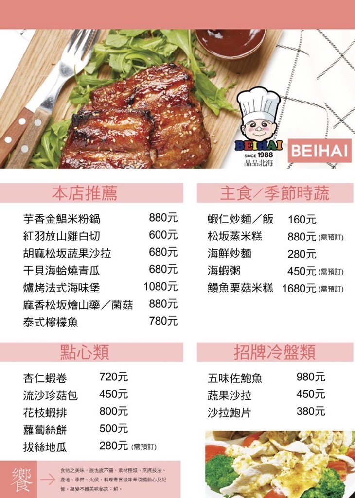 菜色內容依季節時令調整,實際菜色、價目依現場提供為主。