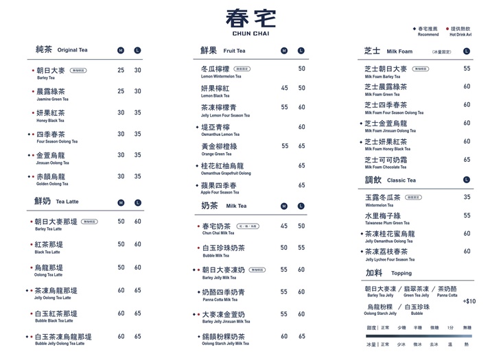 店家揀選品質上等的茶葉,沖泡回甘不澀的清香茶水,原茶品味,便很享受~搭配鮮奶,以及新鮮水果…等食材,用心特調一杯又一杯風味講究、獨具用心的茶飲,為您點綴繽紛豐富、好幸福的飲茶時光!