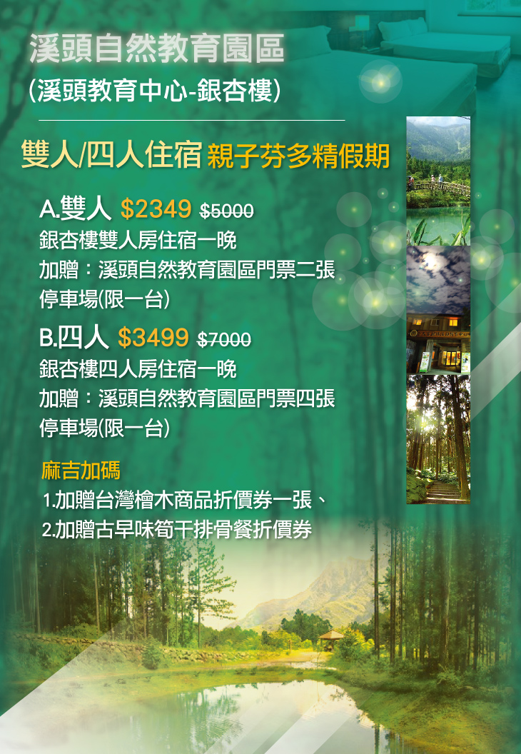 【溪頭自然教育園區(溪頭教育中心-銀杏樓)】感謝麻吉們熱烈搶購,已全數賣光光。