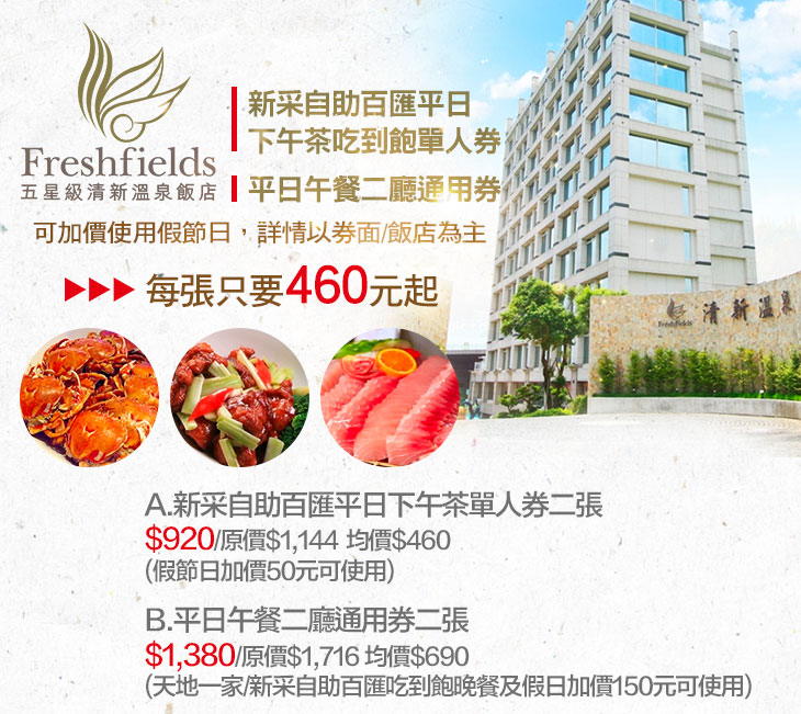 A.新采自助百匯平日下午茶單人券二張 (假節日加價50元可使用)