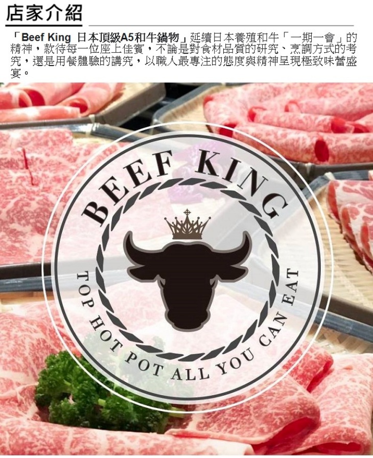 只要4159元,即可享有【台中Beef King】日本頂級A5和牛鍋物雙人豪華和牛套餐券
