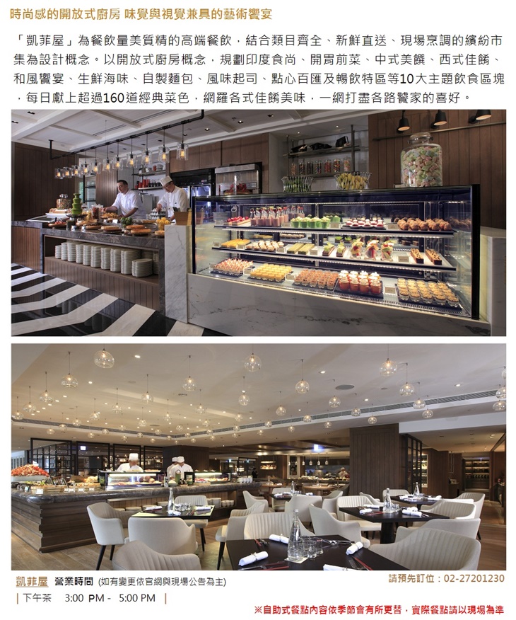只要1180元起,即可享有【台北君悅酒店-凱菲屋】平日下午茶/午餐單人吃到飽餐券