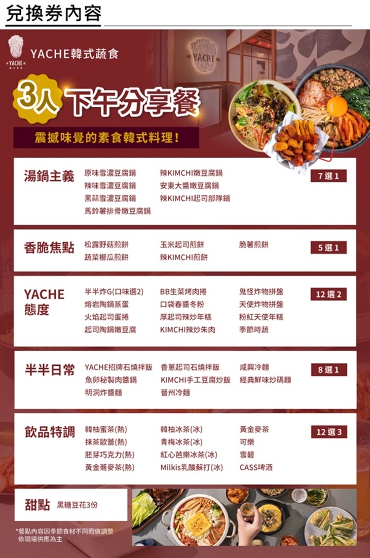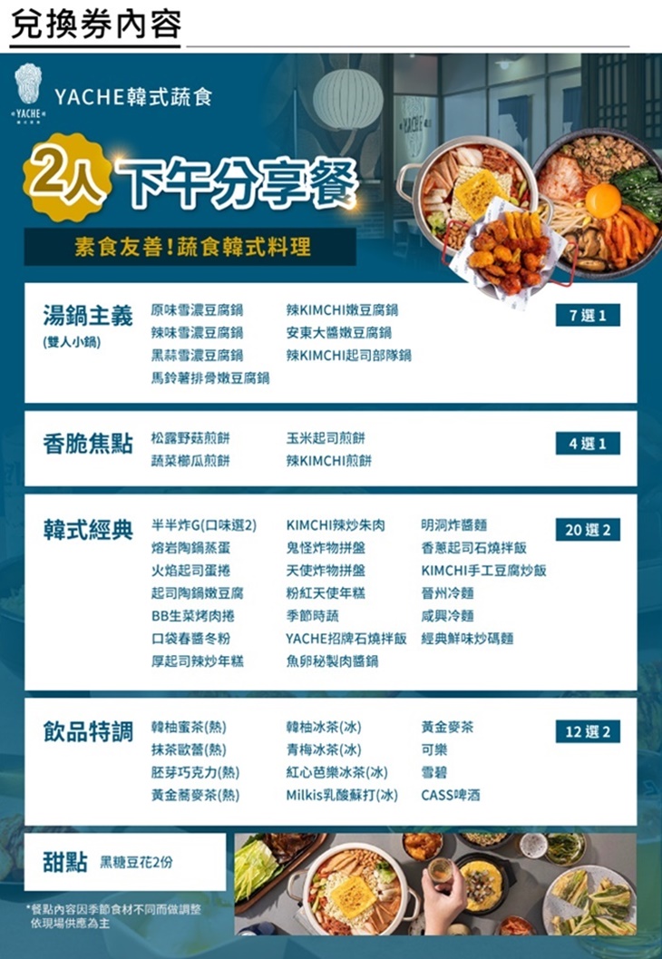 A.YACHE韓式蔬食-雙人下午分享餐券