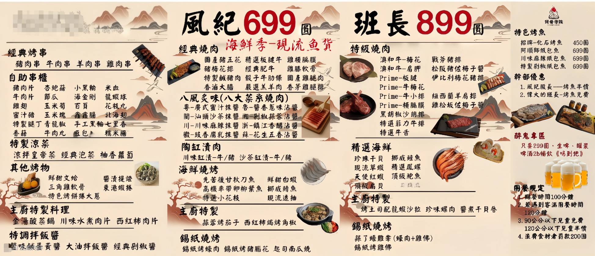 升級版享受一次滿足!除了豐富串烤與熟食品項,多款高品質肉品與特製烤物等你來品嚐,從口感細緻的肉品到香氣十足的烤料理,每道都值得細細品味。自由搭配無限暢飲,讓聚會氛圍熱鬧升溫,開心吃、自在聊,美味與快樂通通一次到位!
