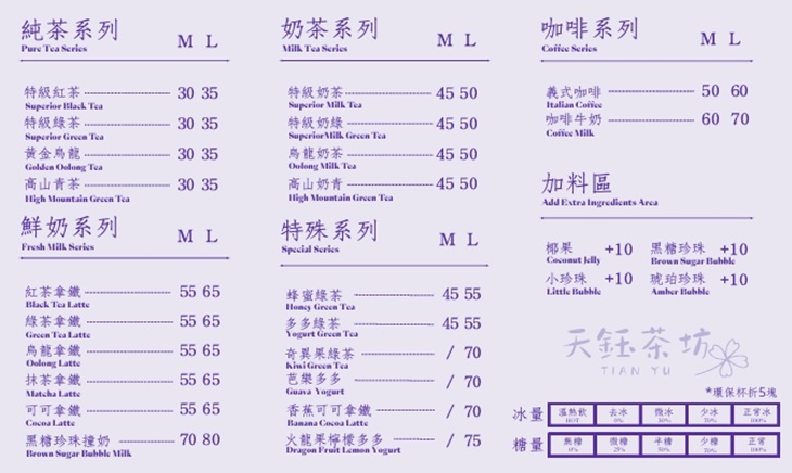天鈺茶坊是一家專注於手搖飲品的飲料店,主打各式風味茶飲與創意特調。店內茶底選用香氣濃郁、口感清爽的茶葉,每一杯皆現點現泡,保留茶香原味。不論是經典原味茶、滑順奶茶系列,還是風味果茶,都能感受到店家在比例與口感上的用心。飲品選項多元,甜度與冰量也可依個人喜好調整,讓每位顧客都能喝到量身訂製的一杯好茶。適合想找一杯順口、解渴又不膩口飲品的你。