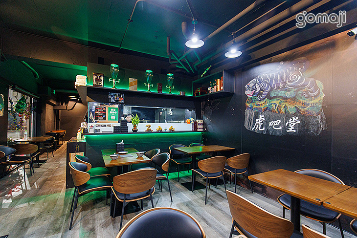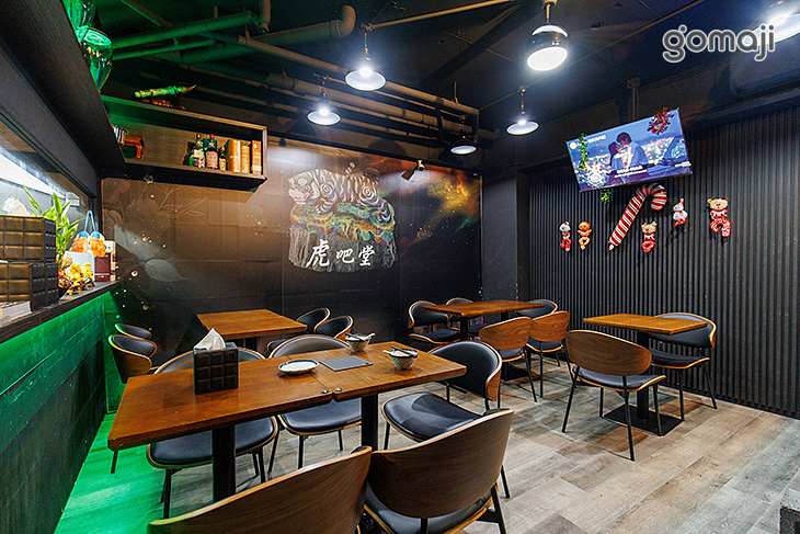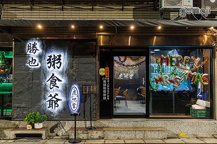 夜色點亮招牌燈光,「勝也粥食爺虎吧堂」在巷弄裡顯得特別醒目,黑石外牆搭配發光字,有種低調又帥氣的氛圍。推門進入,昏黃吊燈與吧檯後一抹螢光綠交織出微微酒吧感,木質桌椅與寬敞動線讓人坐下就很放鬆。店裡最大亮點之一,是門口那座五彩燈光照映的活體水族箱,裡頭蝦兒游來游去,直接把「新鮮」兩個字寫在眼前。無論是三五好友相約聊天、情侶約會,或是下班後來碗熱騰騰宵夜,勝也粥食爺虎吧堂都是療癒味蕾、放鬆心情的好去處。
