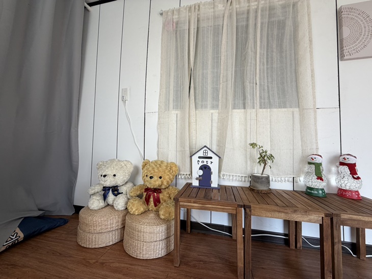 房內採溫馨簡約風格,採光明亮、空間寬敞,讓人一進門就能放鬆心情。雙人房適合情侶或親子小家庭入住,環境整潔清爽,休憩起來格外安穩;五人房則規劃充足活動空間,無論好友揪團或家庭出遊都能住得自在不擁擠。整體氛圍貼近自然,少了都市喧囂,多了純粹與寧靜,讓旅人能在農場的綠意環繞中,好好休息、好好充電。