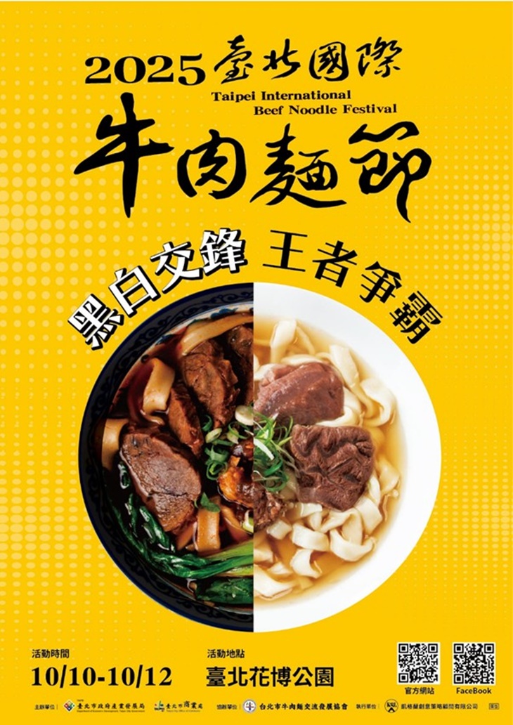 「2025臺北國際牛肉麵節」—黑白交鋒 王者爭霸將於10/10~10/12舉行,民眾不可錯過為支持的參賽店家應援、在嘉年華市集近百攤商中一次吃遍北中南優質牛肉麵的良機,民眾有機會見證韓國超夯人氣王大廚呂敬來分享「以韓國視角看臺北牛肉麵」,也有機會與呂主廚現場互動,亦可持Gomaji優惠券至33個店家享用店家全新推出的招牌牛肉麵。