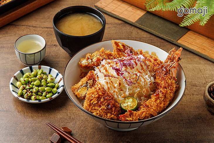 金黃酥脆的揚炸海鮮丼一上桌氣勢十足,整圈炸物使畫面澎湃又療癒。多種海鮮食材通通披上蓬鬆麵衣,炸得酥香金黃,筷子一夾就聽見迷人的卡滋聲。咬下去外層香脆、內裡依然鮮嫩多汁,飽滿海味在嘴裡迸開,帶著濃郁卻不厚重的鮮甜香氣。淋上醬汁,再點綴蔬菜絲,色彩繽紛、層次豐富。每一口都鹹香中帶點清新不膩口。搭配熱騰騰味噌湯,就是一碗視覺華麗、味道飽滿又超有飽足感的奢華海鮮丼。