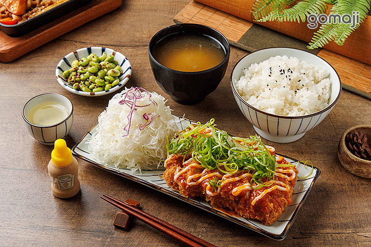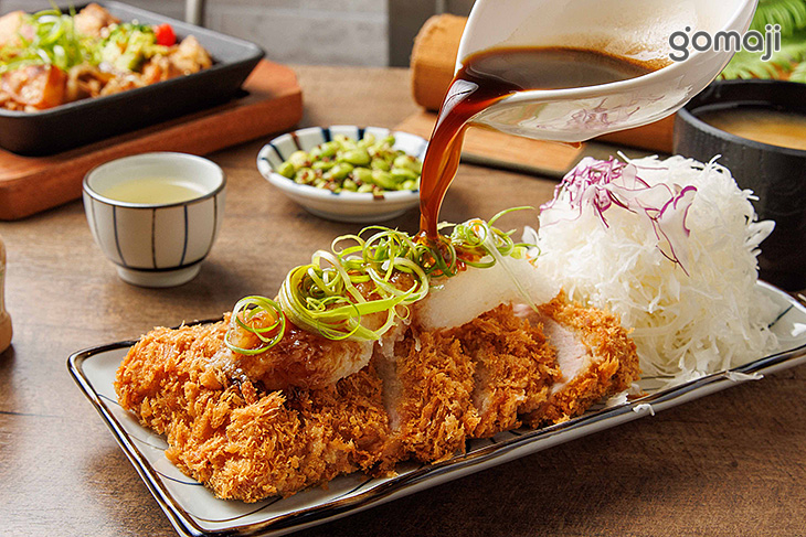 長盤上躺著金黃豬排,外衣炸得蓬鬆酥脆,光看就讓人食指大動。切開斷面可以看見厚實肉質,粉嫩多汁、完全不乾柴,上頭再鋪上雪白蘿蔔泥,畫面清爽又充滿層次。趁熱淋下香濃特製醬汁,醬香、油香與麵衣香瞬間交織,香氣四溢。大口咬下,外酥內嫩、鹹甜平衡,豬排的扎實飽口配上一口爽脆蔬菜與香Q白飯,更顯得滿足過癮。再喝一口暖呼呼味噌湯,整份餐點豐盛、療癒又充滿儀式感,是想好好犒賞自己時最幸福的一道選擇。
