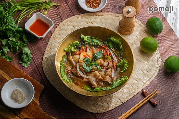 這碗冬蔭功湯喝起來酸香濃郁,湯頭溫潤順口,帶有清爽的香氣與自然酸味,讓人一喝就開胃。豬肉與海鮮食材吸飽湯汁,咬下去多汁又帶點微酸提味,層次感很足。整體口感溫和不刺激,就算不吃辣也能輕鬆享受泰式料理的魅力。推薦給喜歡酸香風味的朋友,這道湯會讓你喝得很滿足!