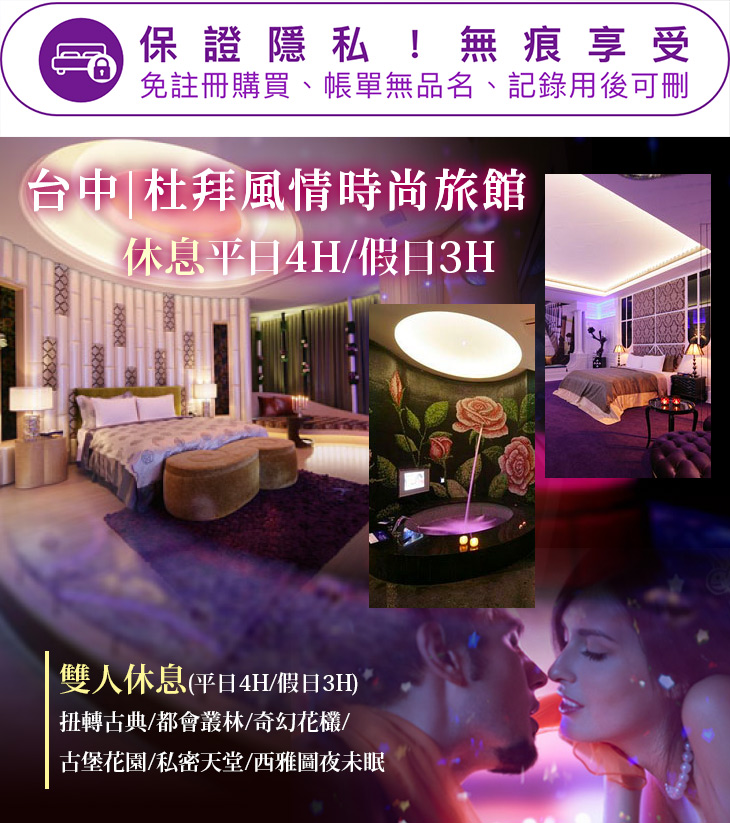 誰說到外縣市旅遊一定要花大錢住制式化的飯店或民宿?現在麻吉們到台中遊玩時,【台中-杜拜風情時尚旅館】絕對是您城市旅行最佳選擇!比杜拜更杜拜的特色旅館,六星級超高規格享受,重金打造獨一無二的豪華套房,風情萬種各自散發迷人魅力,彷彿置身不同時空當中,不必出國就能體驗環遊世界的渡假氛圍!
